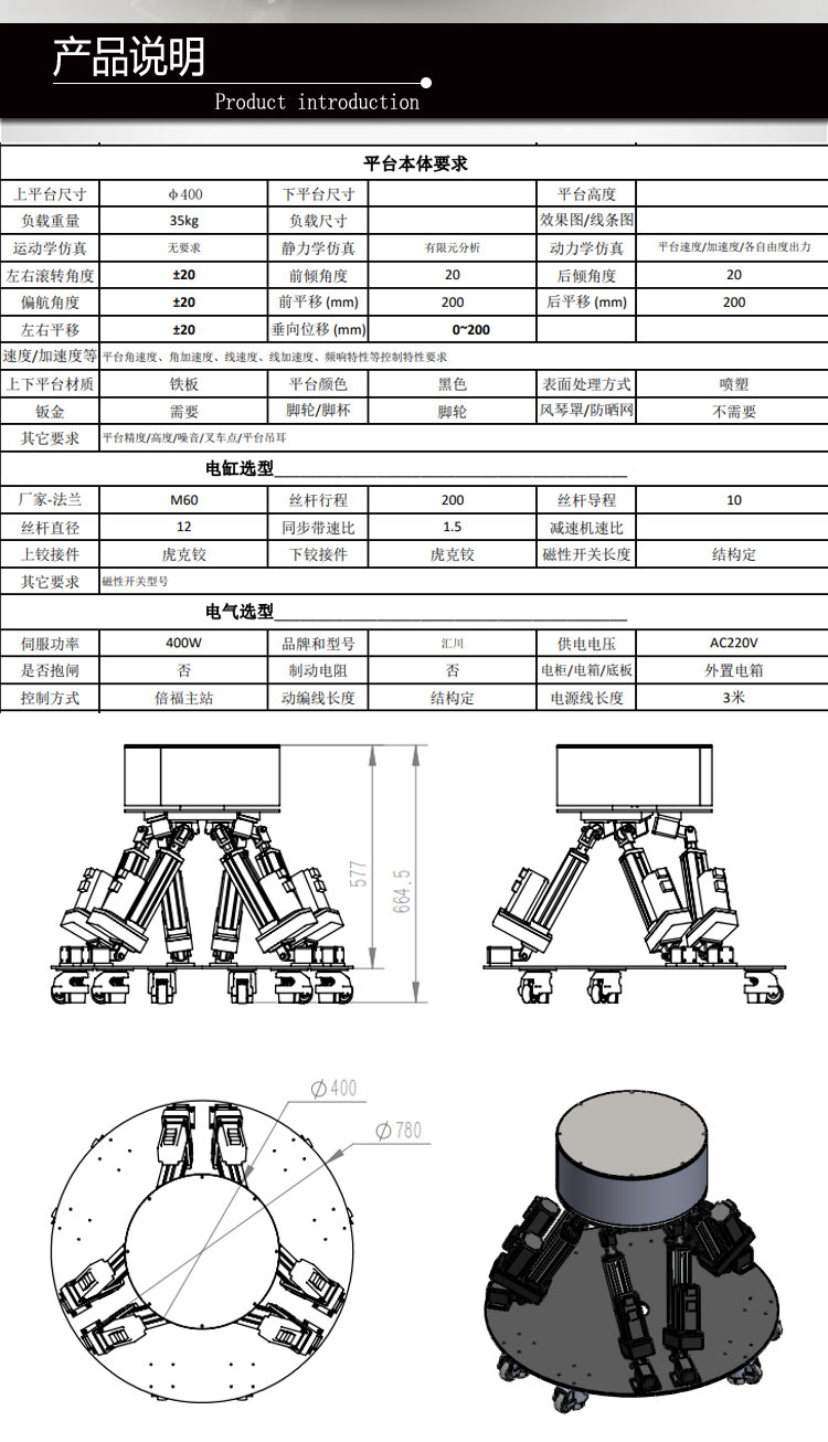 該款七自由度傾斜搖擺試驗臺是一種對艦船、汽車、飛機、宇航等交通工具進行運動模擬的試驗設備。因其能全面考察和檢測在真實環境中平臺及其部件的各種性能,故其應用前景廣泛。