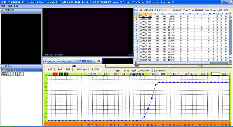 l 將采集好的動作文件導入,進行波形編輯(相位、斜率、幅值),可以調整曲線的橫軸(時間)和縱軸(數值比例)l 播放影片時,波形曲線要同步走