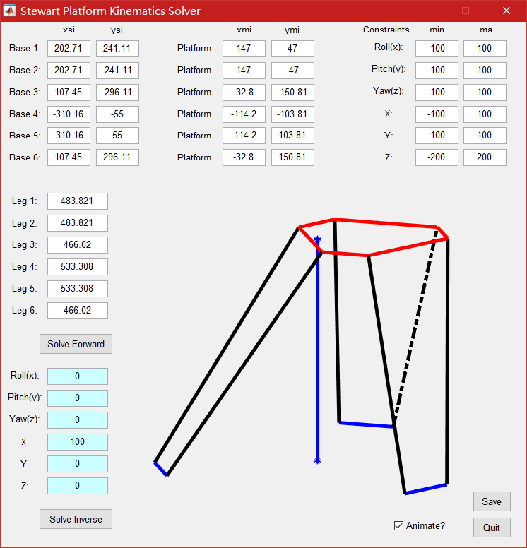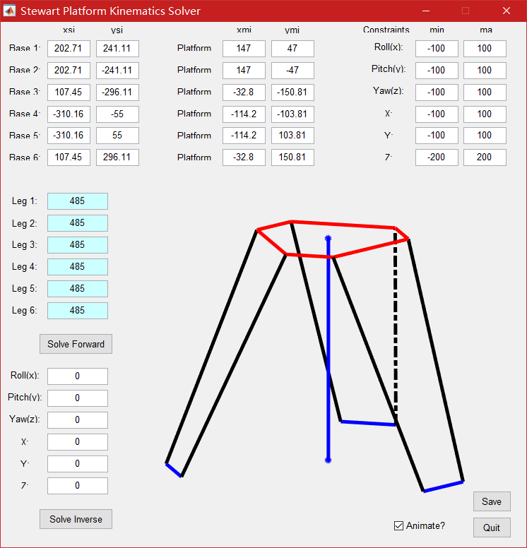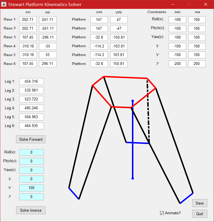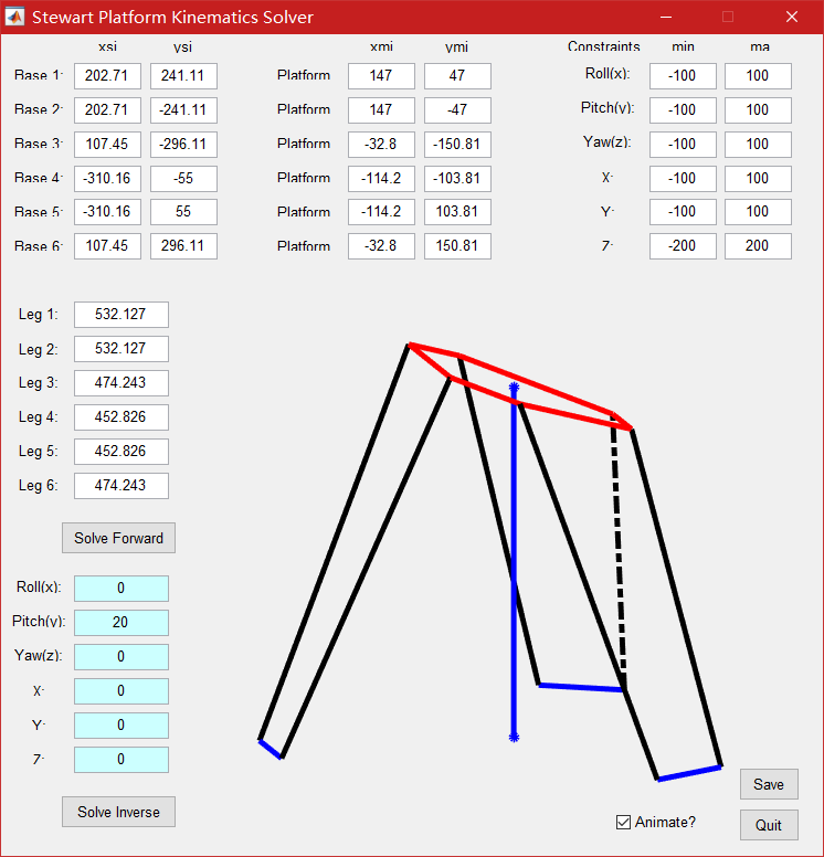 通過修改對應位姿參數,反解得各桿長,如圖2.22.2所示。