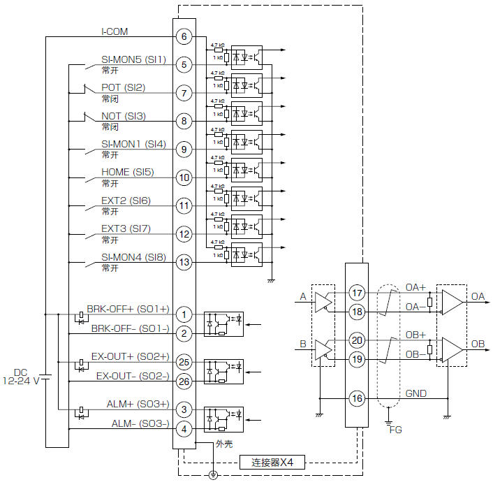 啟動/暫停輸入,接正泰自復按鈕。 按鈕的另外一端接外部電源負極 |