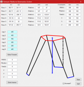 導入或手動輸入平臺的鉸接點坐標和電動缸相關參數后,程序根據內置的正解和反解算法計算出電缸的伸長量和平臺位姿數值,以及它們...